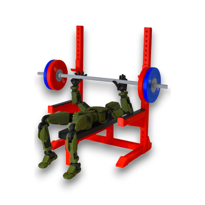 Complementa tu figura DUMMY 13 con este bench press (banco de pesas) impreso en 3D, diseñado específicamente para encajar con el estilo y escala del modelo. Ideal para dioramas, fotografía conceptual o como accesorio en composiciones artísticas.